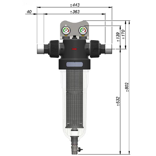 Cintropur Filtergehäuse Filtertyp NW500 - Anschlüsse: 2’’ Aussengwinde, andere Anschlüsse auf Anfrage möglich - Durchfluss: 18 m³/h bei delta P 0,2 bar - Betriebsdruck: 10 bar - Max. Druck: 16 bar - Max. Betriebstemperatur: 50°C - Entleerungsschraube: Polyamid (PA) + Polyester (2K) - Filterkopf: Polypropylen (PP) + 20%Glasfaser (GF) - Filterglocke: SAN - Filterschlüssel: ABS - Anschlüsse: PA - Überwurfmutter: PP + 20% GF - O’Ringe: Nitril Butadien Rubber (NBR) - Zentrifuge + Abschlussdeckel: Polypropylen (PP) + 20% GF + Schaumgummi (2K) - Filterstützkorb: PP + 20 % GF - Adapter Ablasskugelhahn : PA - Filtervliese: Polyester (nicht waschbar) oder Nylon (waschbar) - Filteroberfläche: 1288 cm² - Serienmäßige Ausstattung: Filtervlies in 25 Mikron, Schlüssel, Ablasskugelhahn ¾ Messing vernickelt, 2 Manometer mit Glycerin 0-20 bar ¼’’ Messing + 2 Anschlüsse 2’’ - Option: Wandhalterung aus Edelstahl in 3 mm - Sonstige verfügbare Feinheiten: Nichtwaschbar: 1 -5-10 -25-50-100 Mikron (Set von 5 Filtervliesen) Waschbar: 150-300 Mikron |