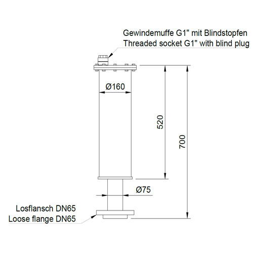 - Anschluss: Vorschweissbund DN65 (d=75) mit DIN- Losflansch PPs-el/St