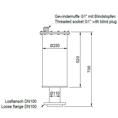Säuredunstabscheider Typ SDA 250, 15,0 Liter, PE-el elektrisch leitfähige Ausführung), Anschluss Losflansch DN 100