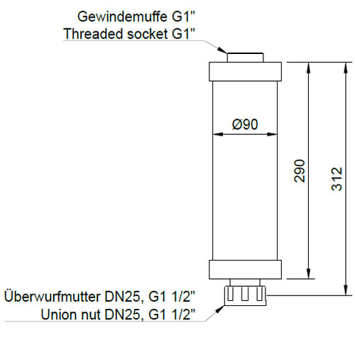 Säuredunstabscheider Typ SDA 90, 1,0 Liter, PE-el (elektrisch leitfähige Ausführung), Anschluss Überwurfmutter