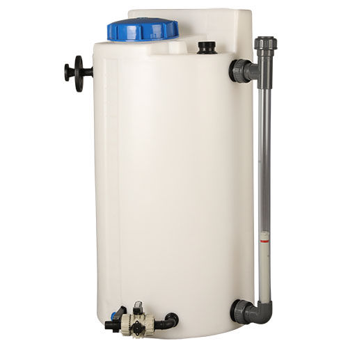 Unsere Dosierbehälter zeichnen sich durch ihre hohe Qualität aus. Sie sind nahezu spannungsfrei, weisen eine gleichmäßige Wandstärke auf und besitzen glatte Innenwände. Durch ihre chemikalienbeständigen Eigenschaften, ihre UV-Stabilität und ihre Eignung für den Einsatz in der Lebensmitteltechnik bieten sie vielseitige Anwendungsmöglichkeiten. Unsere Dosierbehälter der Typenreihe DTE werden aus hochwertigem Polyethylen im Rotationsschmelzverfahren nahtlos hergestellt. Sie verfügen über eine eingeformte Literskala, die eine einfache Füllstandsanzeige ermöglicht, sowie Flachstellen zur problemlosen Montage von Armaturen und Behälterdurchführungen. Für den Einsatz von Rührwerken sind im unteren Bereich Befestigungswinkel integriert, um Bewegungen zu verhindern.
