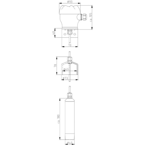 Leckagesonde mit Ø40mm Fühlerteil, PE, Anschlusskopf und Rohrkappe Ø63mm mit Stellverschraubung |