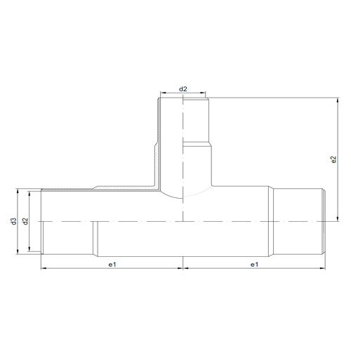 UP-GF-PVCU T-Stück 90° reduziert, DIN 16 966, Form T2, Rohrtyp B, mit Laminatenden, PN 16