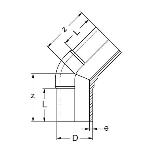 Winkel 45°, PE 100, SDR 17, lang