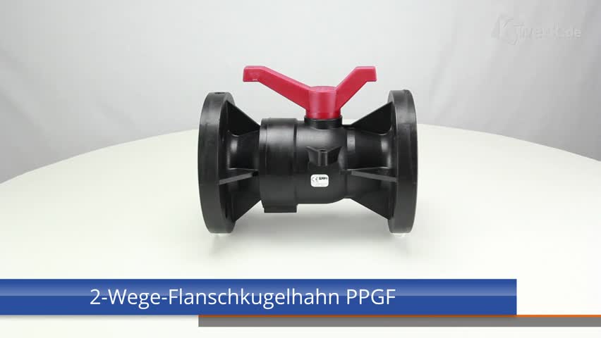 2-Wege-Flanschkugelhahn PPGF, EPDM = roter Hebel