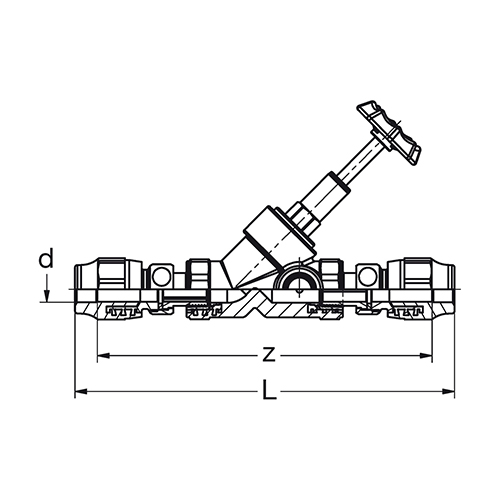 PP-RCT-RG Ventil Schrägsitz mit Entleerung + Prüfstopfen verschraubt grün