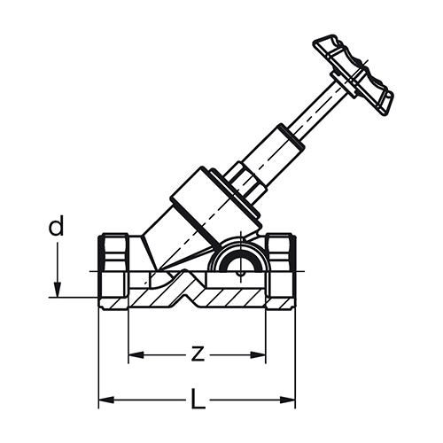 PP-RCT-RG Ventil Schrägsitz mit Metallsitz + Entleerung + Prüfstopfen grün