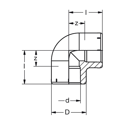 Durchmesser und Wanddicke der Muffen entsprechend DIN EN ISO 15874.Toleranzen bei den Z-Maßangaben sind abhängig von der Dimension. Bis d/D 160 = +/- 3 mm. Ab d/D 180 = +/- 10 mm.