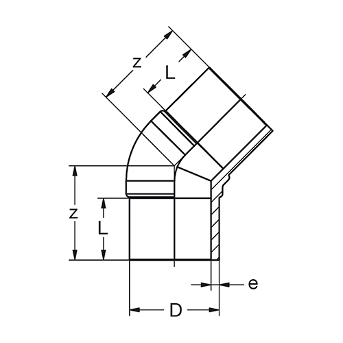 Gespritzte Formteile, für die Heizelement-Stumpf-Schweißung und die Heizwendel- Muffen-Schweißung (nur lange Ausführung); ohne Verschwächungsbeiwerte. Werkstoff PP-RCT (Polypropylen Random-Copolymer Temperature resistant) mit modifizierter Kristallstruktur (beta nukleiert) und erhöhter Temperaturbeständigkeit, Borealis RA7050GN, Farbe RAL 6024 Verkehrsgrün.Das Material entspricht den Anforderungen der aktuellen KTW-Leitlinie des Umwelt-bundesamtes (UBA). Geometrische Eigenschaften Außendurchmesser und Wanddicke entsprechend DIN EN ISO 15874.Toleranzen bei den Z-Maßangaben sind abhängig von der Dimension. Bis d/D 160 = +/- 3 mm. Ab d/D 180 = +/- 10 mm. Betriebsdruck Der Betriebsdruck richtet sich nach der SDR Klasse und dem eingesetzten Rohr. Ausführung Geeignet für Heizelement-Stumpf-Schweißung und Heizwendel-Muffen-Schweißung nach DVS Richtlinie 2207. Schweiß-Geräte und Schweiß-Werkzeuge sollten der DVS Richtlinie 2208 entsprechen. Zertifizierung B-R Formteile unterliegen regelmäßigen internen und externen Qualitätskontrollen. Die Formteile erfüllen die Anforderungen der DIN Certco Richtlinie ZP 10.25.1 und NSF14 + 61 |