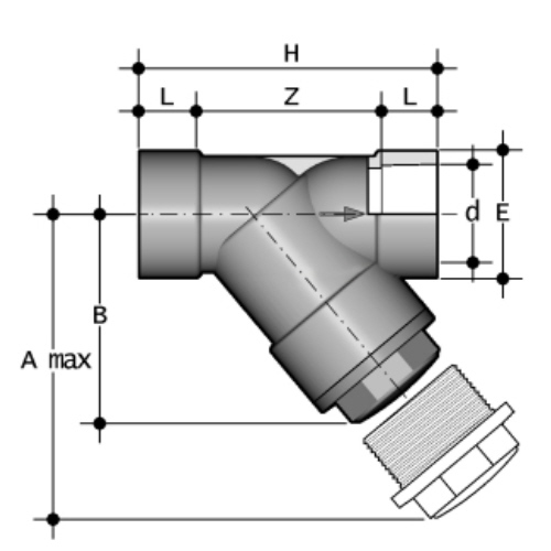 - Durchflussrichtung: Siebteil nach unten gerichtet