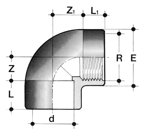 PVC U Winkel 90°,Klebemuffe/Gewindeanschluß