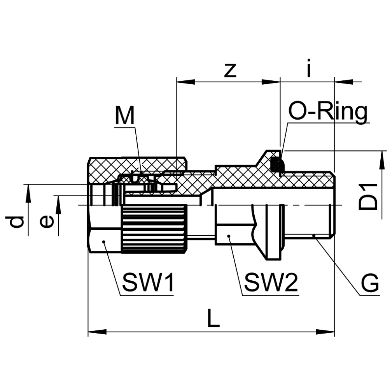 Gerade Einschraubverschraubung mit O-Ring aus PVDF, Typ SO 21124 OR