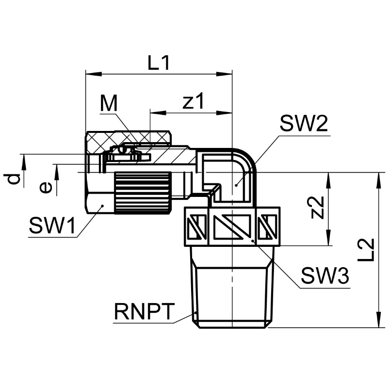 Winkel-Einschraubverschraubung PVDF, NPT Gewinde, Typ SO 22421 NPT