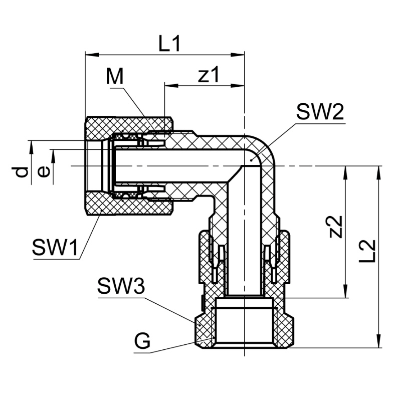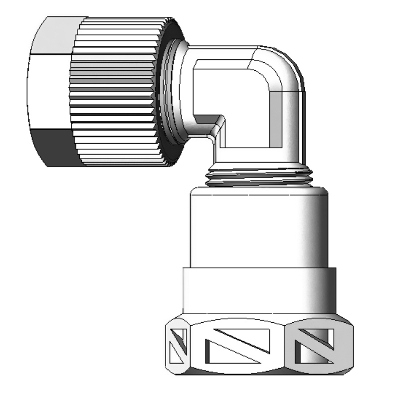 Winkelverschraubung aus PVDF, mit Übergangsmuffe, Typ SO 22221